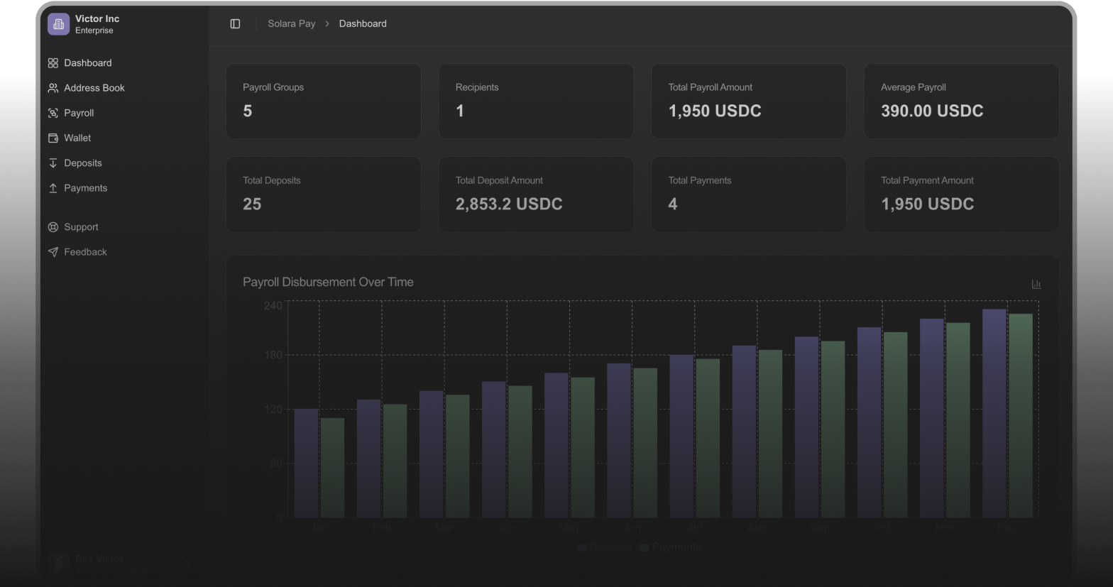 Transparent and secure payroll management powered by Solana.